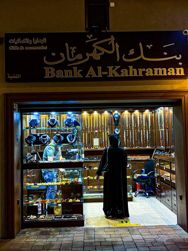 اسم المحل بنك الكهرمان للهدايا والكماليات الفضية ويبتاع الاكسسوارت المصنوعة يدويا والمسابيح وقطع اثرية وقطع مصنوعة من الكهرمان وكل قطعة سوف نعرف من ماذا صنعت وعلى ماذا تحتوي وبكم تقدر بمساعدة الموظف احمد عبدالعال وعلى اكثر قطع تلاقي اهتمام الناس